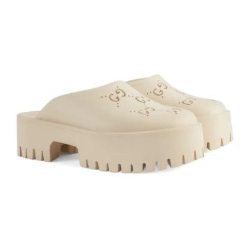 Gucci white high-heeled slippers