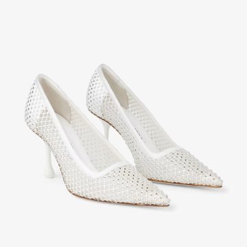 JIMMY CHOO White crystal mesh pointed Flat shoes
