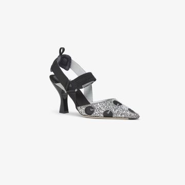 FENDI Black mesh and rhinestone heels