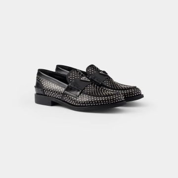 PRADA Studded shiny leather loafers