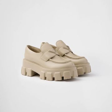 PRADA Neutral ostrich leather loafers