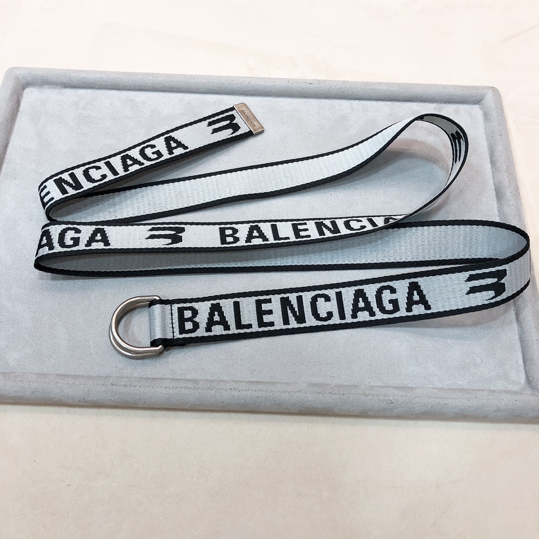 Balenciaga Men’s D Ring Belt In Balenciaga Grey/Green Webbing With Silver Hardware 40mm