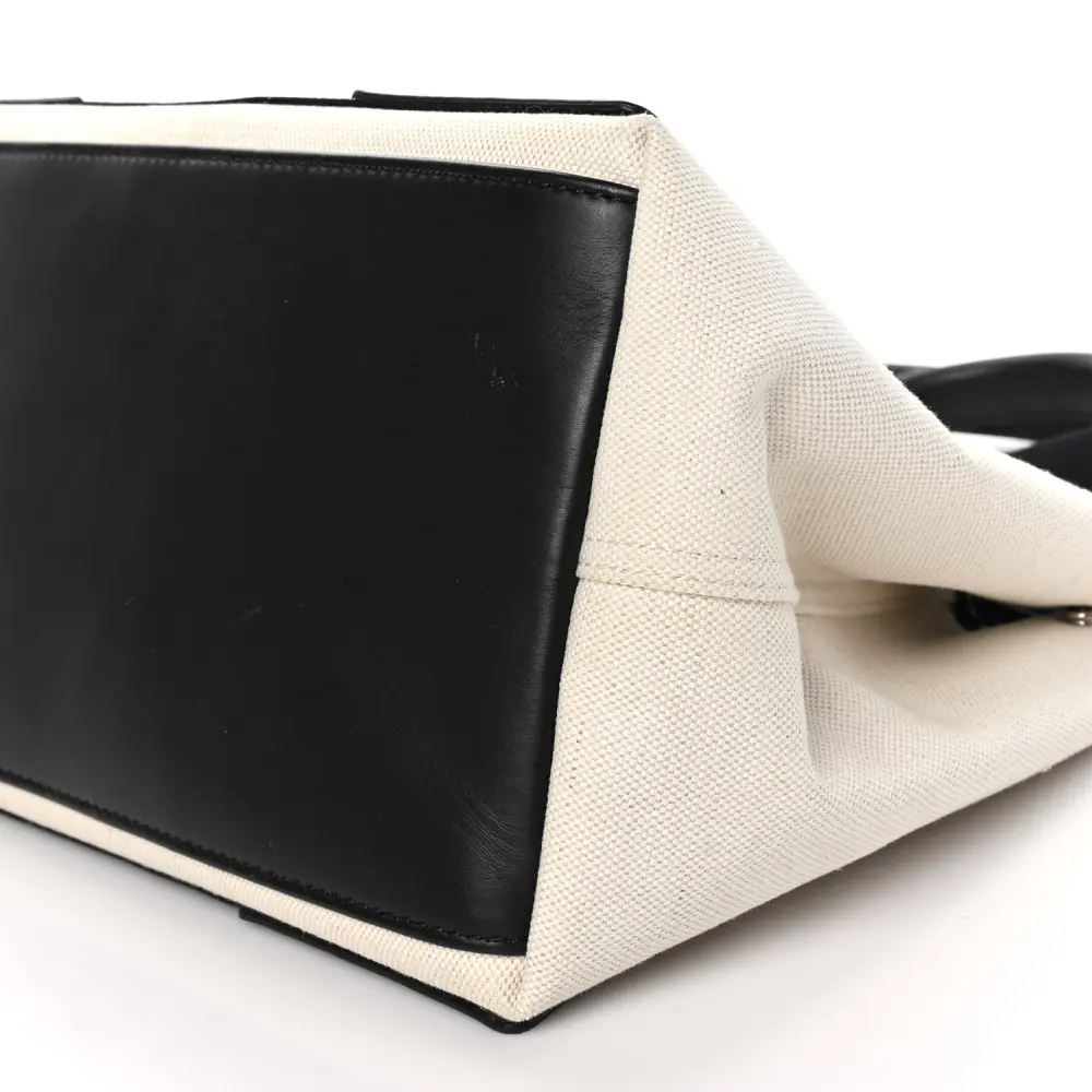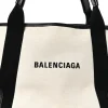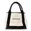 Balenciaga Small Navy Cabas Natural/Black Cotton Canvas