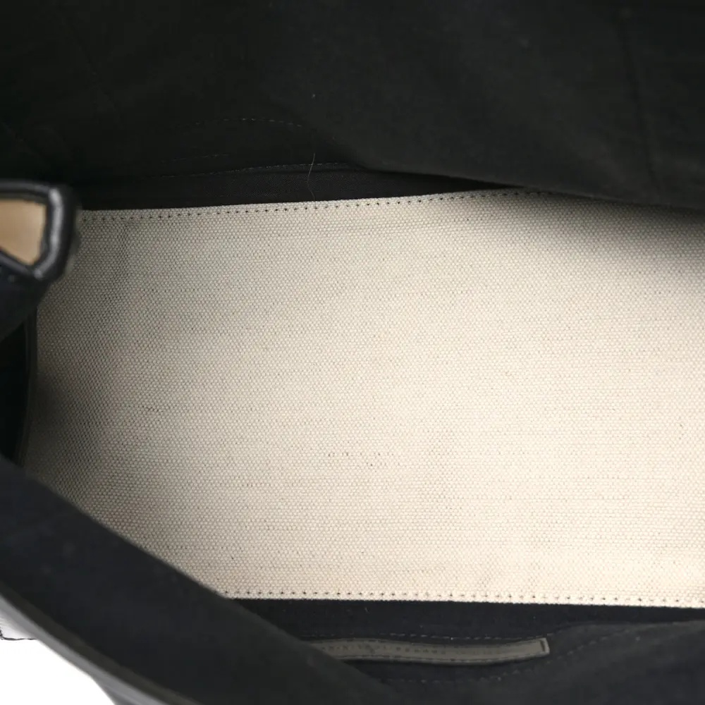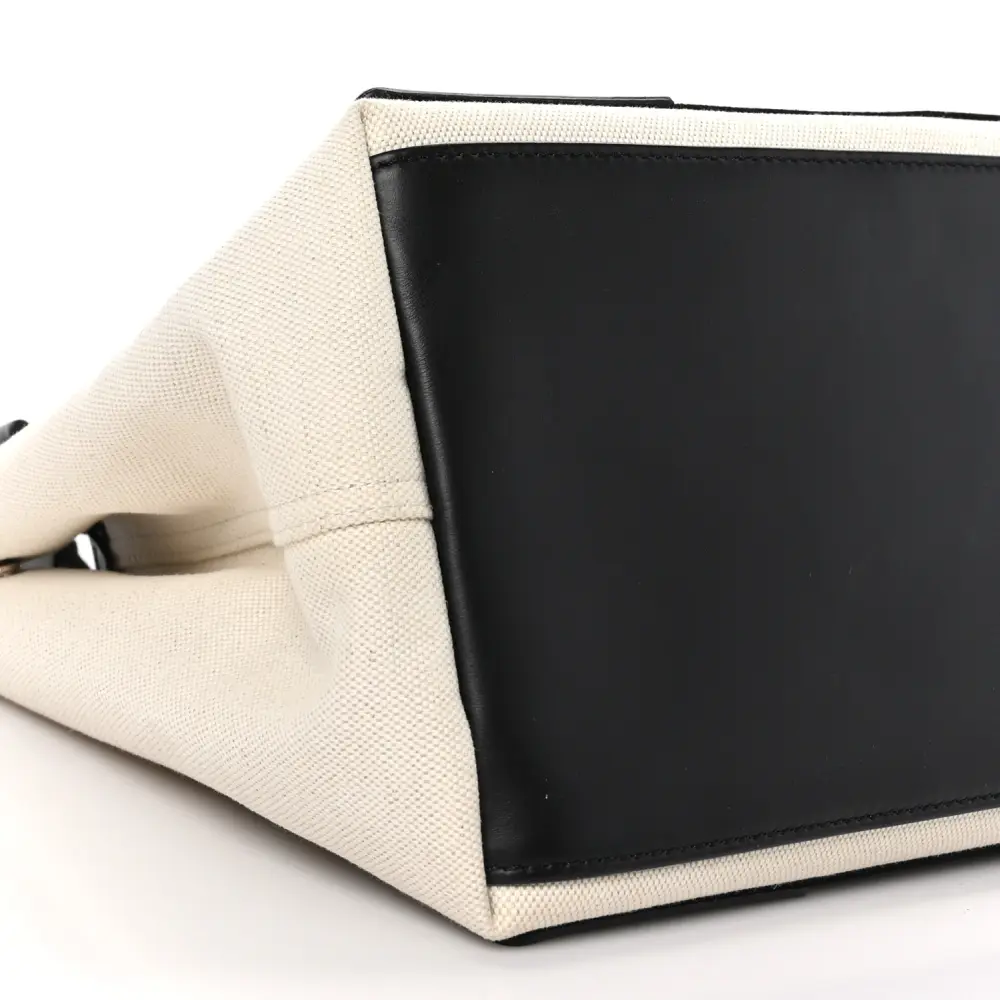 This Balenciaga Small Navy Cabas in Natural/Black combines cotton canvas with satin calfskin leather for a lightweight yet stylish tote. Its spacious interior makes it perfect for everyday use, while black accents add a polished touch. The structured silhouette ensures it retains its shape and functionality. An excellent choice for casual outings or errands, offering both practicality and understated elegance.
