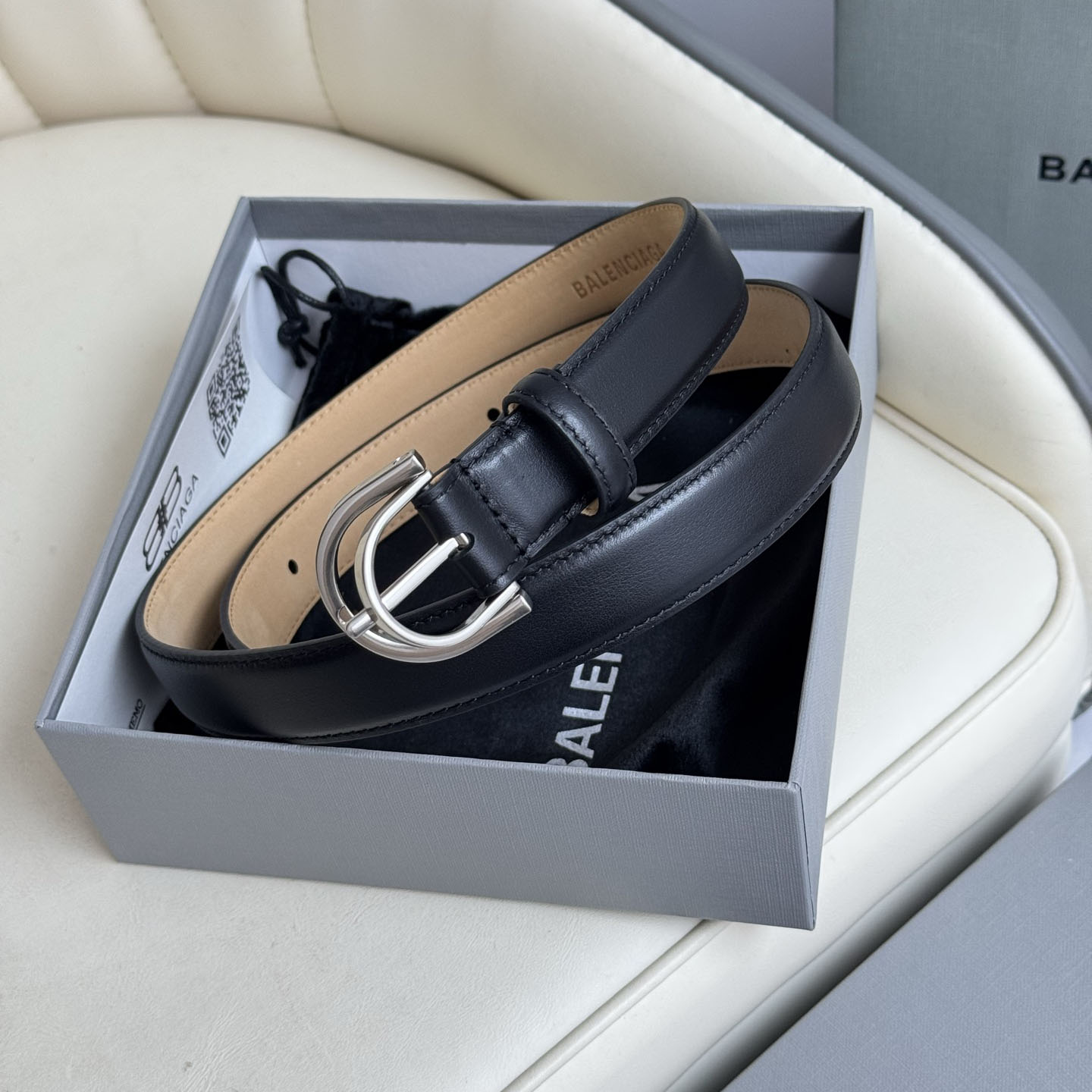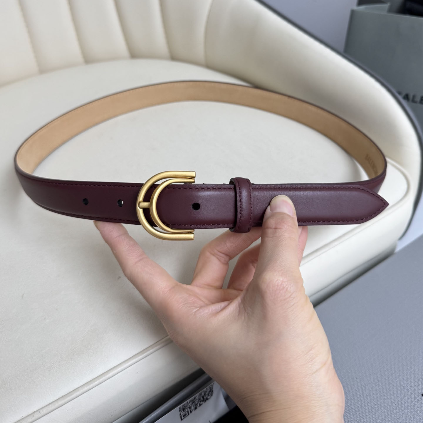 Balenciaga Women’s Rodeo Belt In Burgundy/Black Smooth Calfskin With Gold/Silver Hardware 25mm