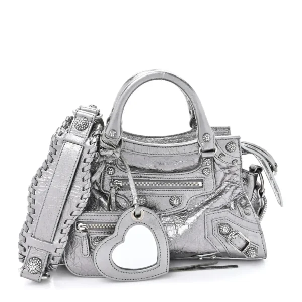 Balenciaga XS Crystal Neo Cagole Handbag Silver Agneau Arena Leather Silver Hardware