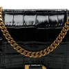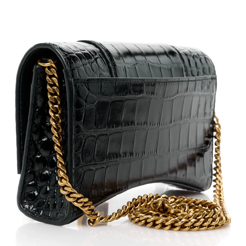 Balenciaga XS Hourglass Chain Bag Black Crocodile Embossed Shiny Calfskin Leather Gold Hardware