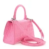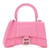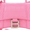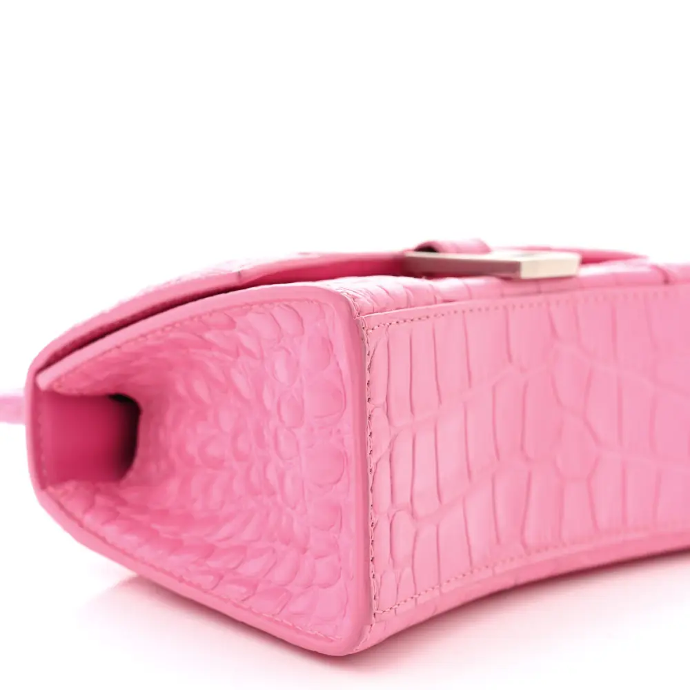 Balenciaga XS Hourglass Top Handle Bag Baby Pink Crocodile Embossed Shiny Calfskin Leather Silver Hardware