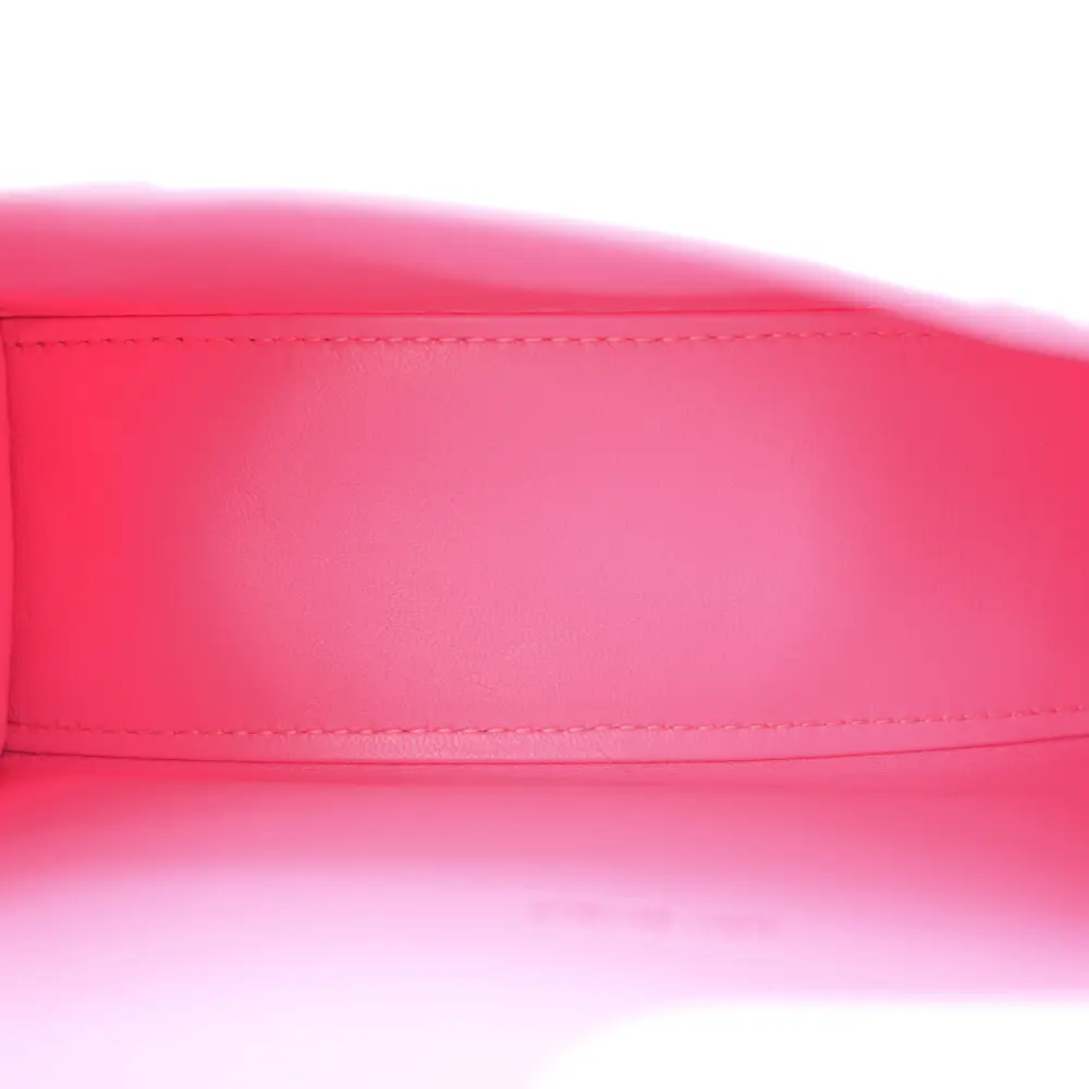 This Balenciaga XS Hourglass Top Handle Bag in Baby Pink is crafted from crocodile-embossed shiny calfskin leather, delivering a luxurious and refined look. The structured silhouette is enhanced by silver hardware, creating a modern and chic design. Compact yet practical, it’s perfect for carrying daily essentials in style. The delicate baby pink hue adds a soft and feminine touch. Ideal for both casual outings and sophisticated events, this bag is a versatile accessory for any wardrobe.