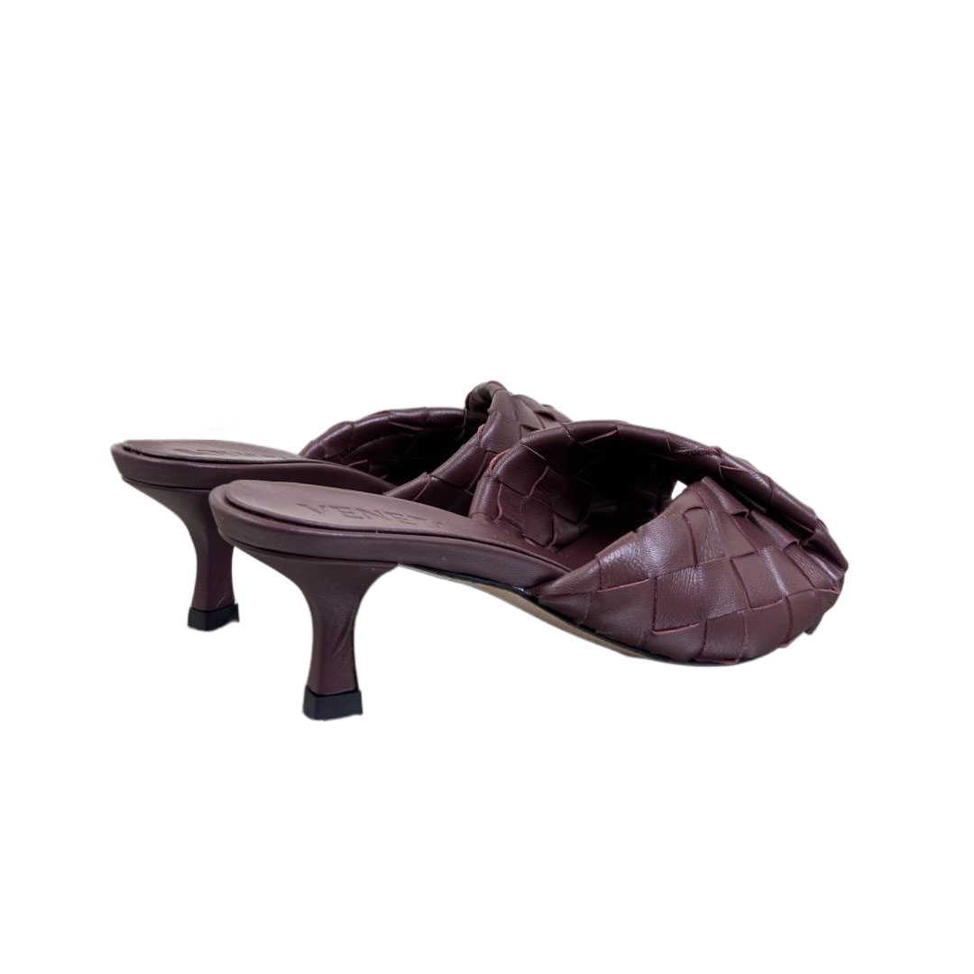 Bottega Veneta Blink Mule In Burgundy Intrecciato Leather Kitten Heel Mule (Heel Height 4.5cm)