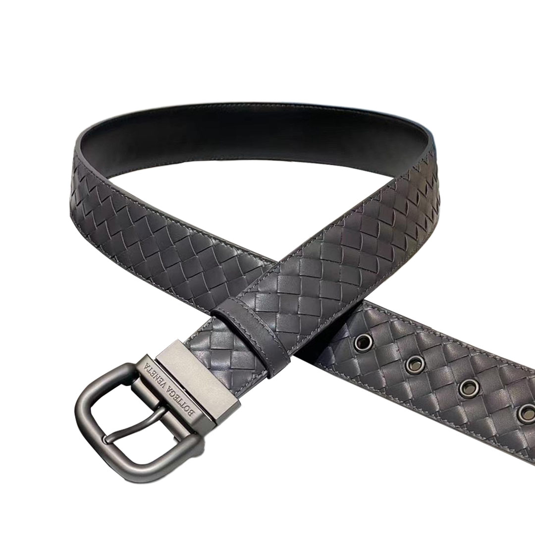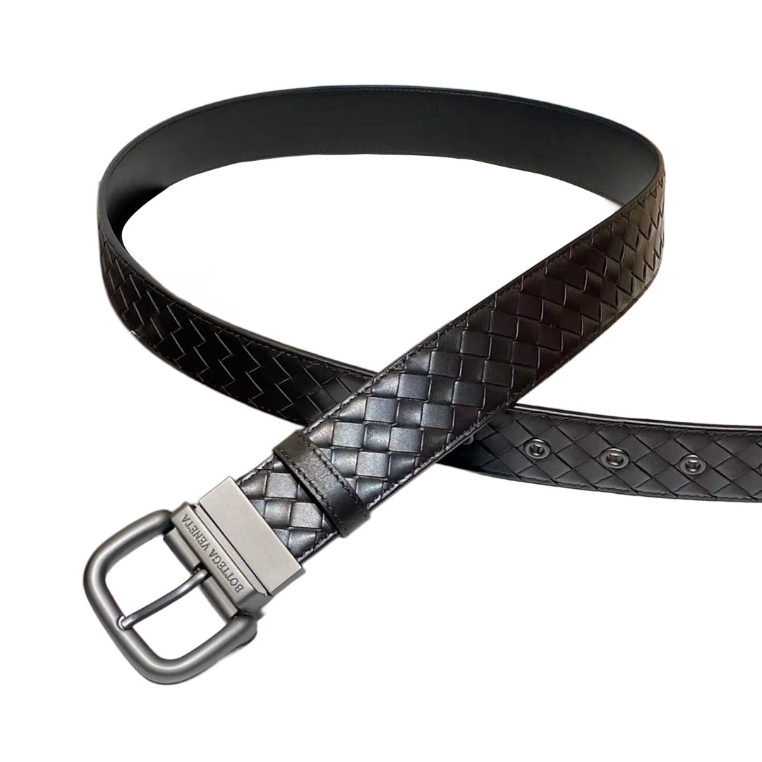 Bottega Veneta Men’s Square Buckle Intrecciato Belt In Black/Coffee/Blue/Dark Grey Calfskin With Gun Black Hardware 40mm