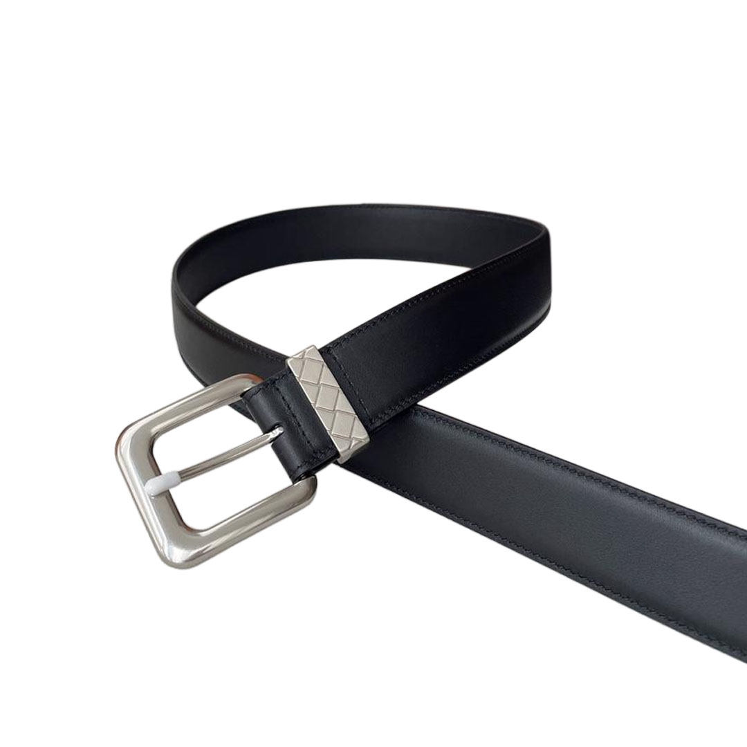 Bottega Veneta Men’s Square Buckle Reversible Belt In Black Smooth Calfskin With Silver Hardware 35mm