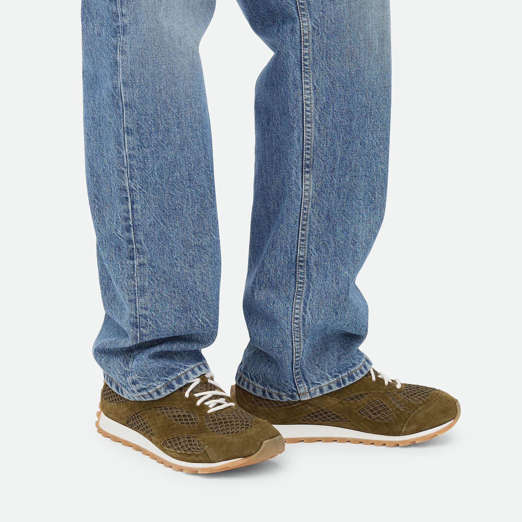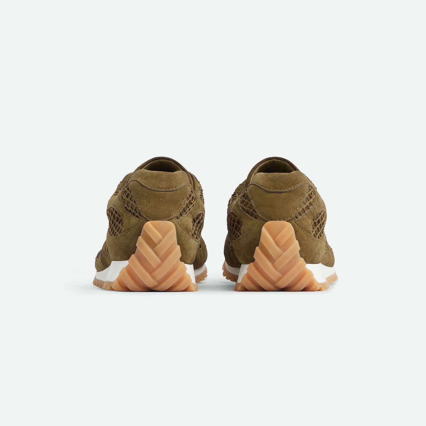 Bottega Veneta Orbit Flash Sneakers In Olive Weathered Suede Leather And Mesh Lace-Up Sneaker
