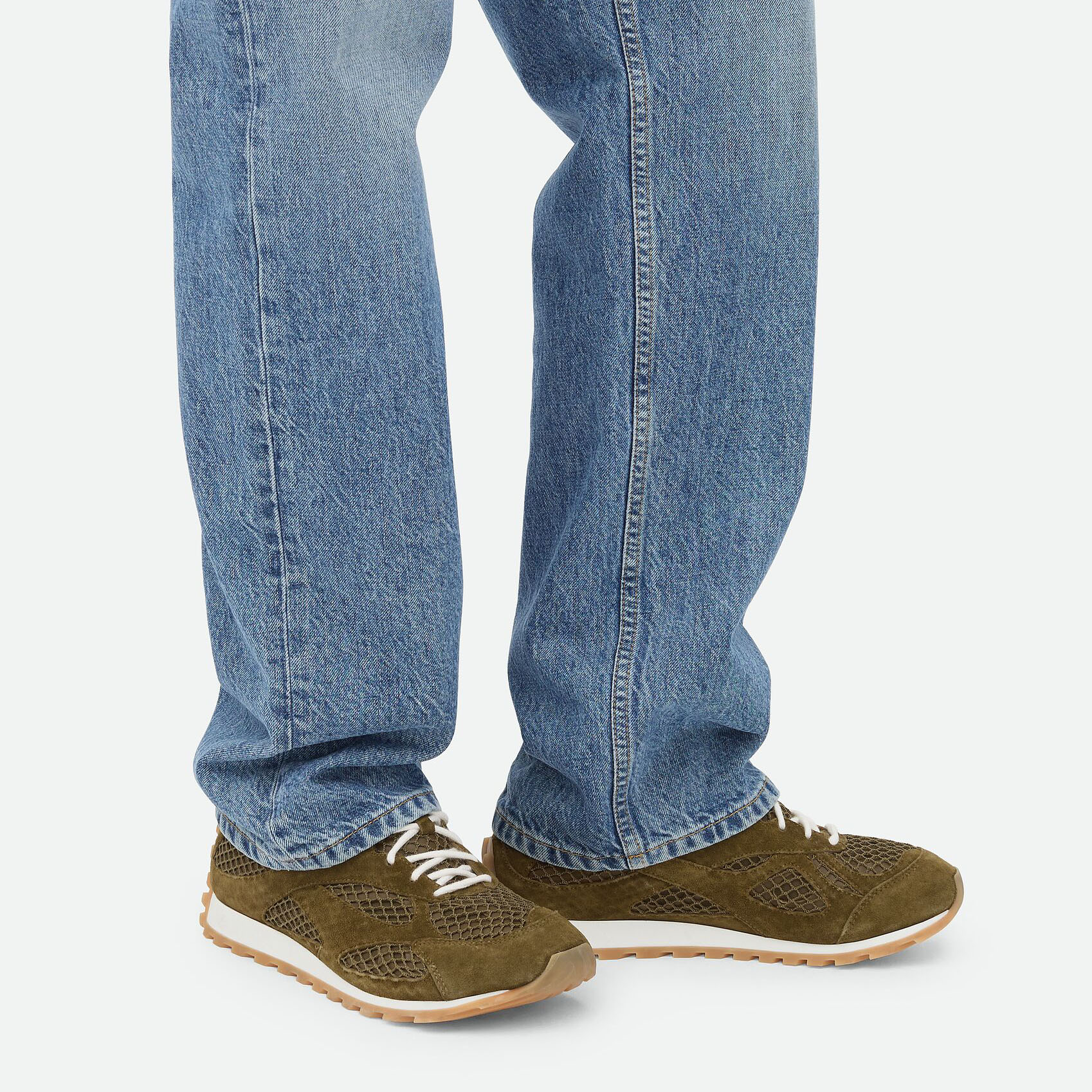 Bottega Veneta Orbit Flash Sneakers In Olive Weathered Suede Leather And Mesh Lace-Up Sneaker
