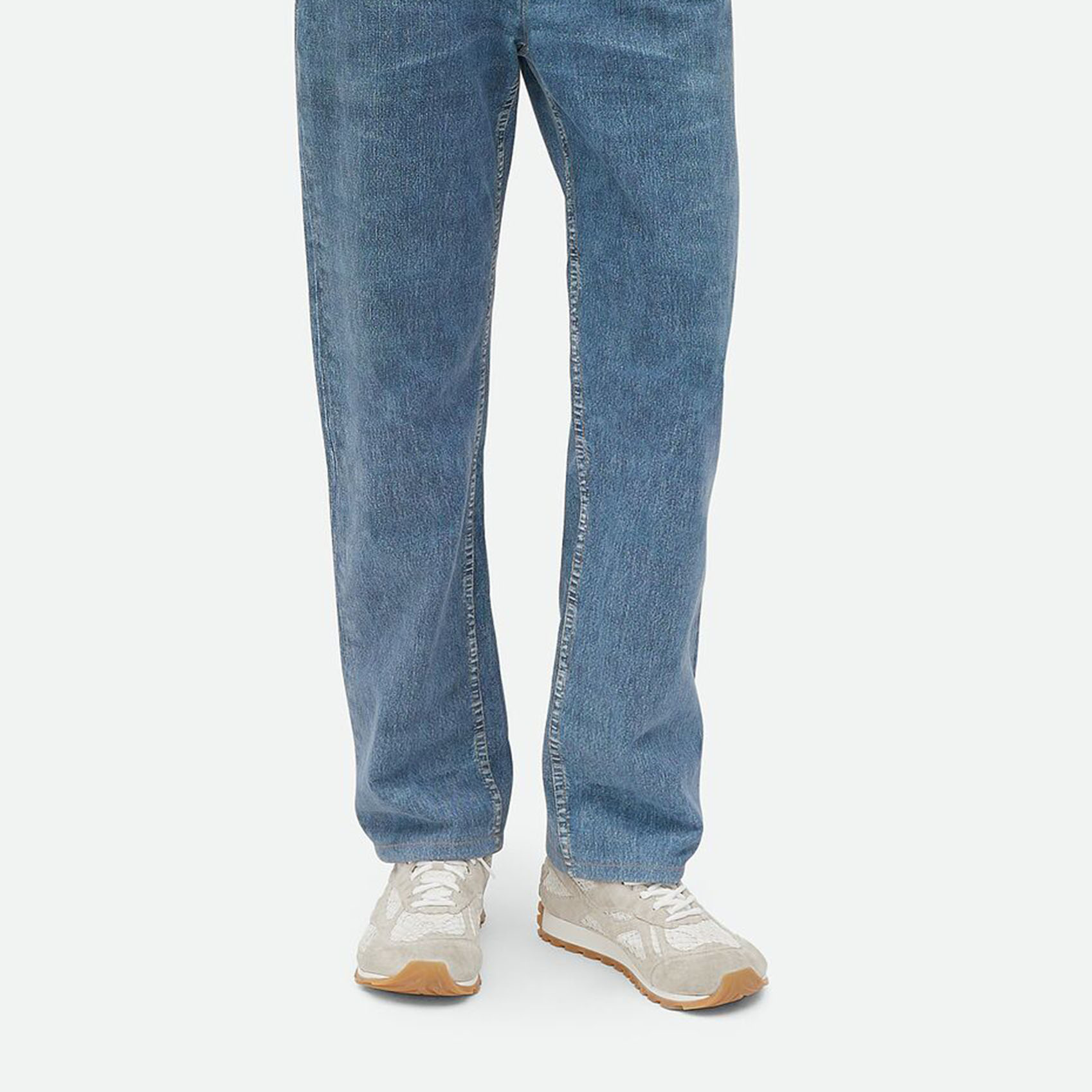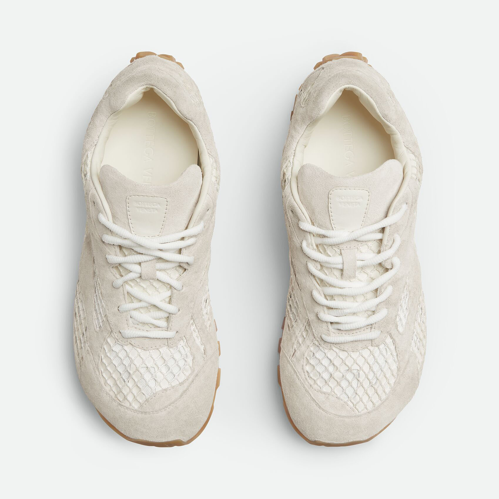 Bottega Veneta Orbit Flash Sneakers In Sea Salt Weathered Suede Leather And Mesh Lace-Up Sneaker