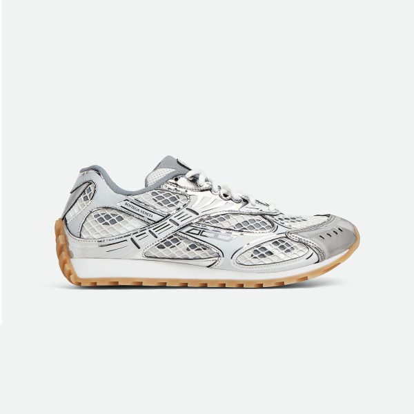 Bottega Veneta Orbit Sneakers In Silver/White Technical Fabric And Mesh Lace-Up Sneaker