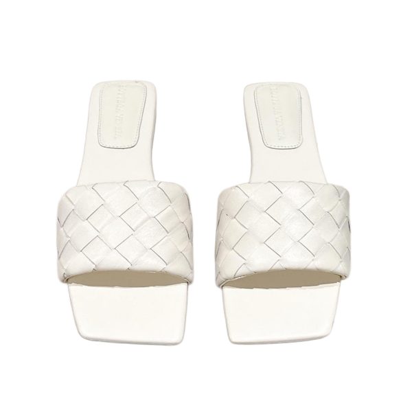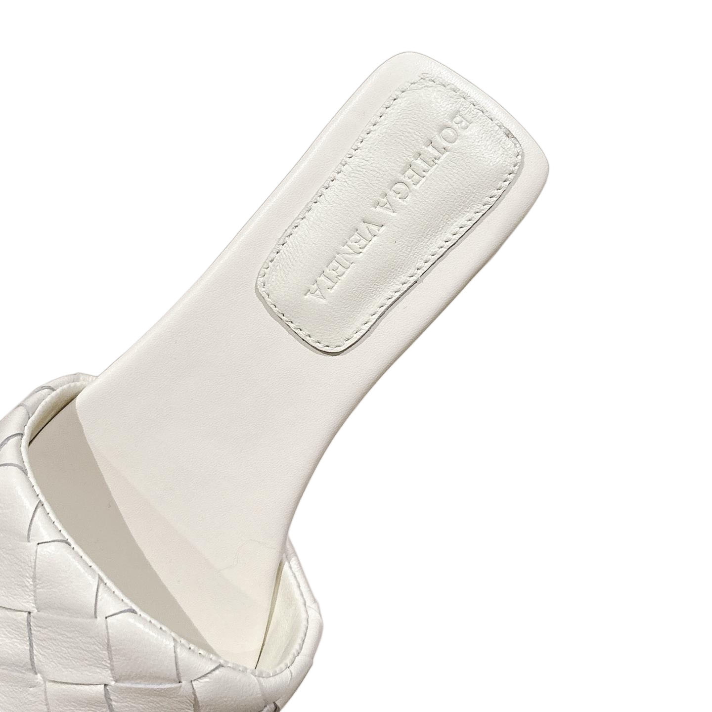 Bottega Veneta Parco Mule In White Intrecciato Leather Flat Mule Sandal