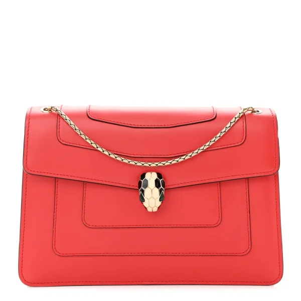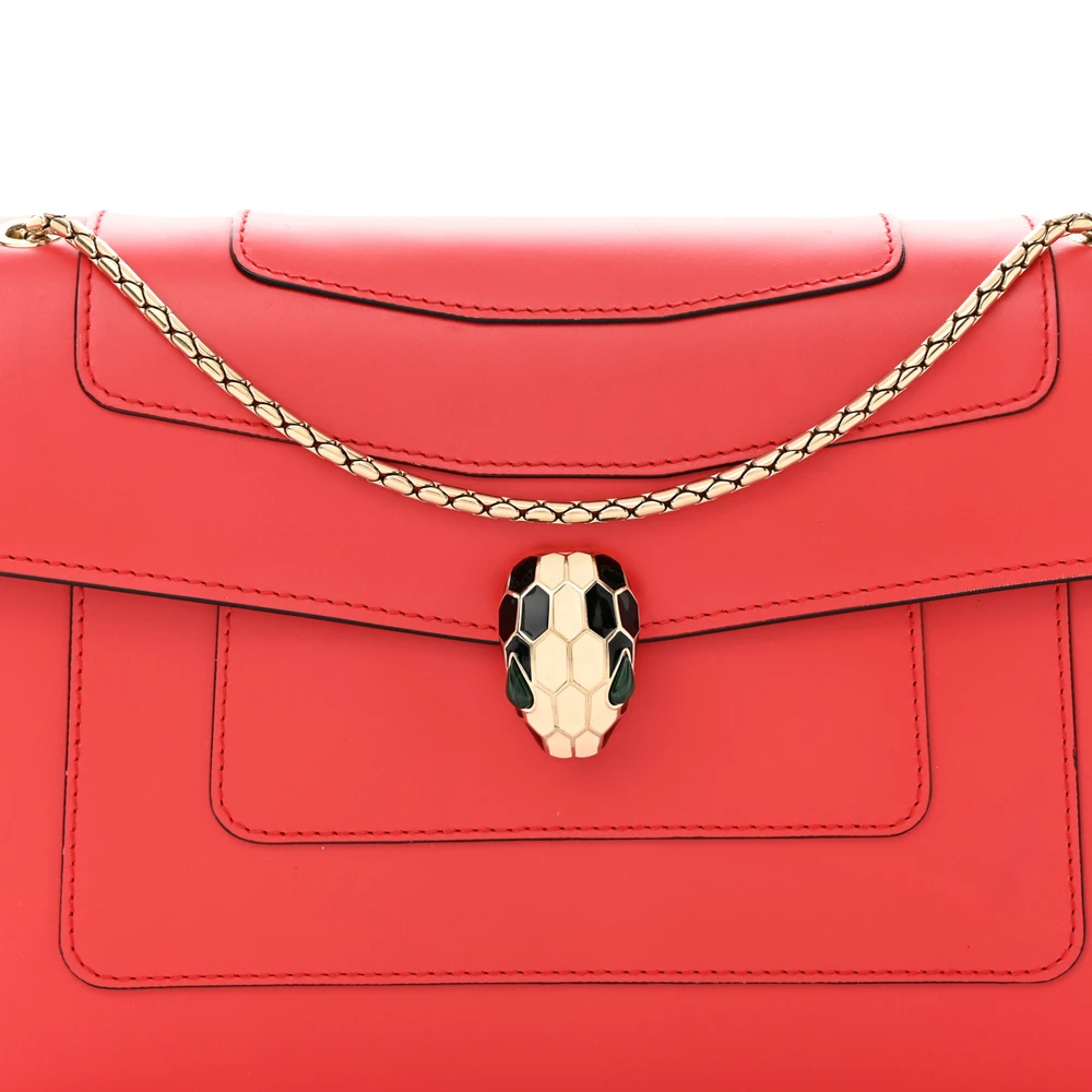 Bvlgari Medium Serpenti Forever Shoulder Bag Red Calfskin Leather Gold Hardware