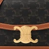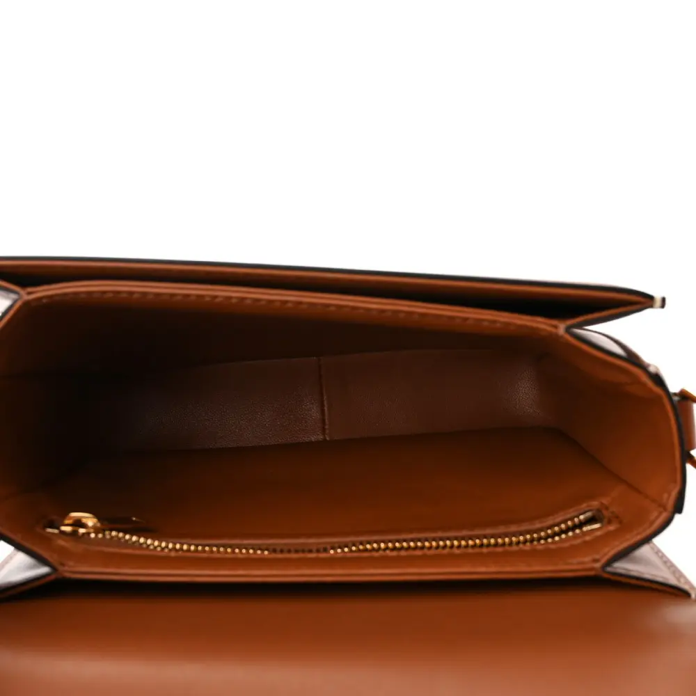Celine Small Teen Triomphe Bag Tan Calfskin Leather & Triomphe Canvas Gold Hardware