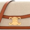 Celine Small Teen Triomphe Bag White/Tan Textile & Natural Calfskin Leather Gold Hardware