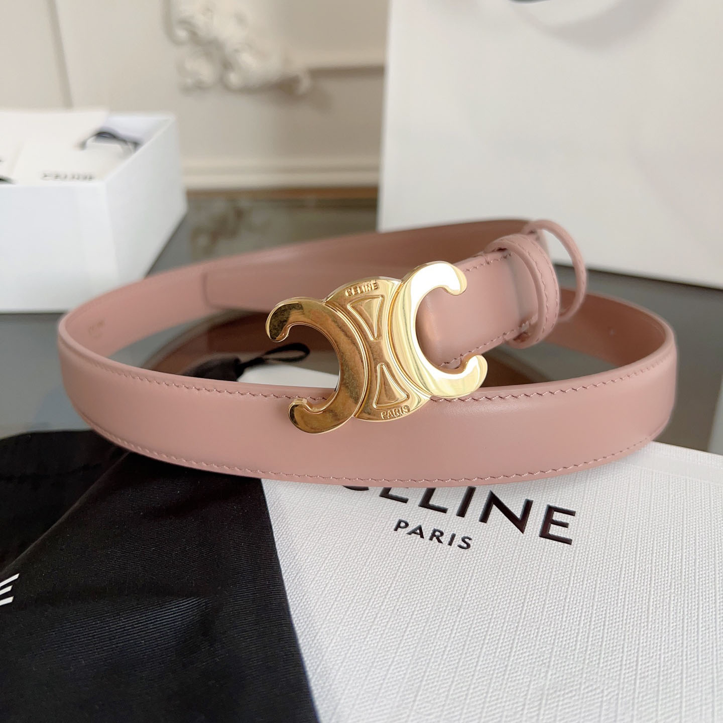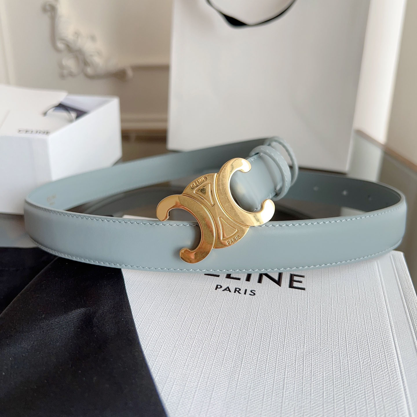 Celine Triomphe Buckle Revesible Belt In Burgundy/Red/Blue/Pink/White/Brown/Black Calfskin With Gold Hardware 25mm