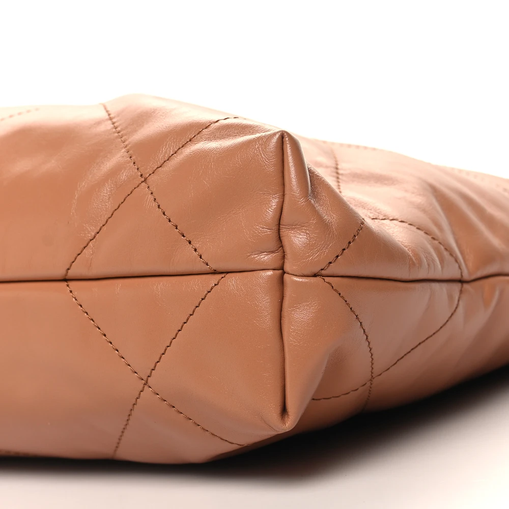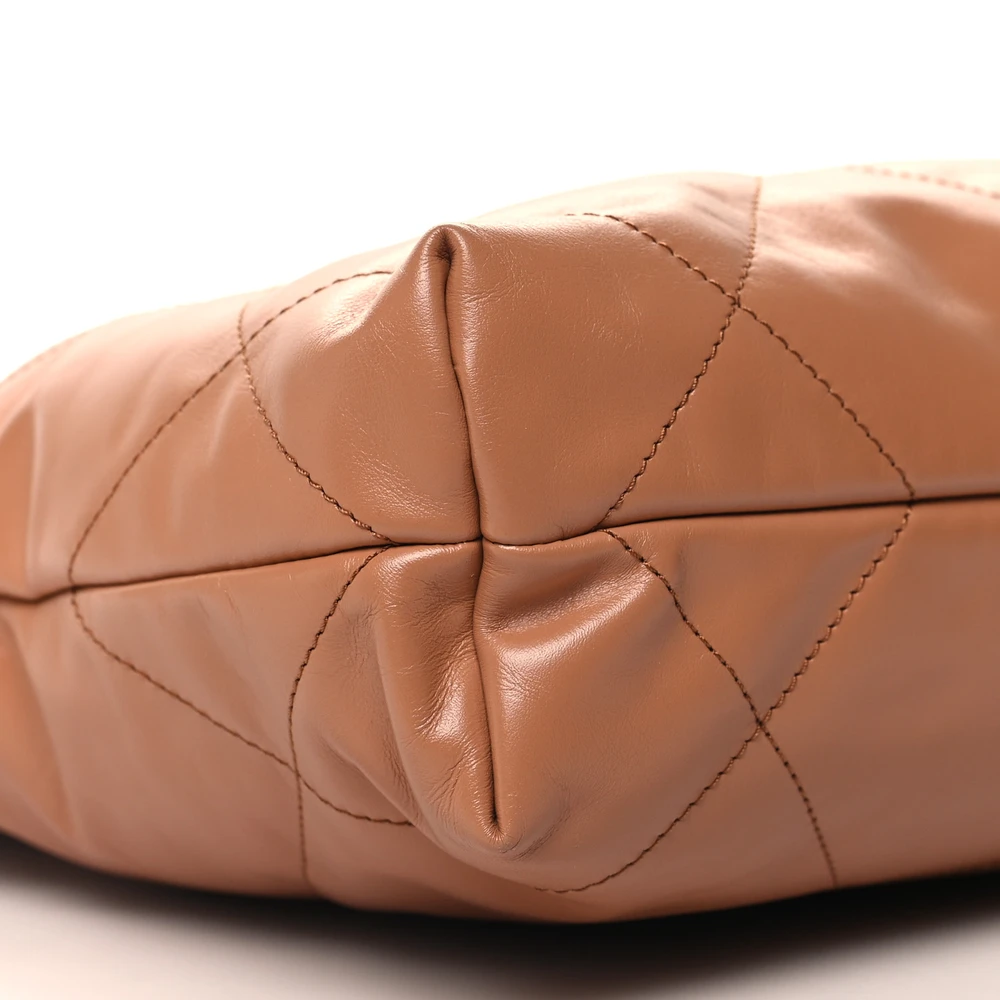 This Chanel Chanel 22 Small in Camel Quilted Shiny Calfskin Leather with Gold Hardware is a modern and luxurious bag. The shiny calfskin leather enhances its chic aesthetic, making it a standout piece. Gold hardware adds a touch of elegance to its design. Spacious yet lightweight, perfect for daily essentials. The soft structure combines practicality with timeless style. A perfect blend of functionality and sophistication.