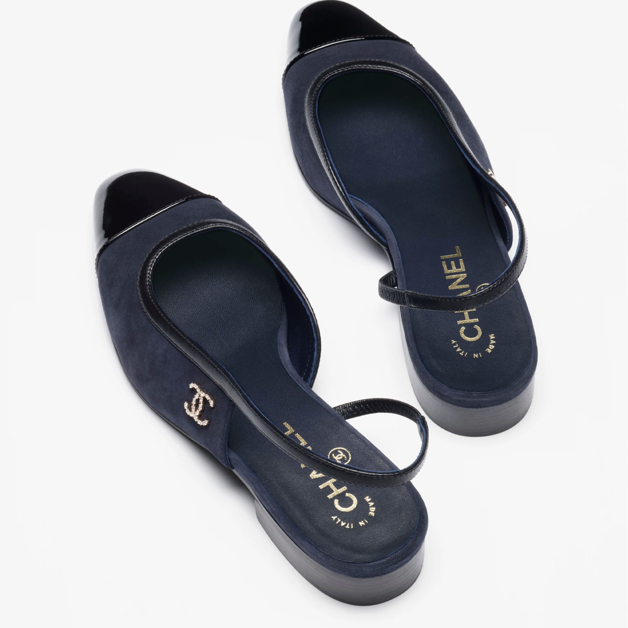 Chanel Black lace up flat shoes Navy and black, suede