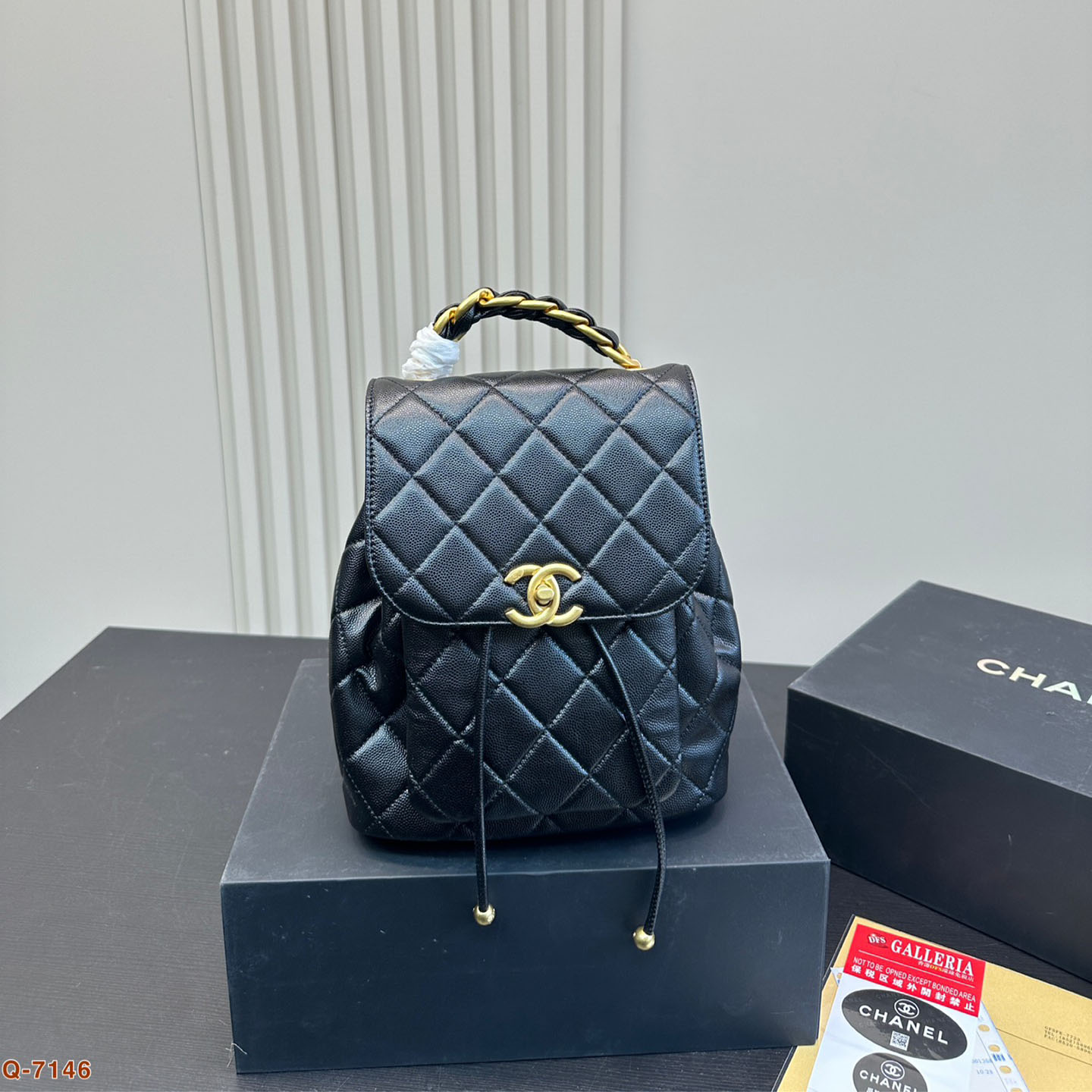 Chanel Black / White / Red / Apricot color Quilted Lambskin Leather Backpacks