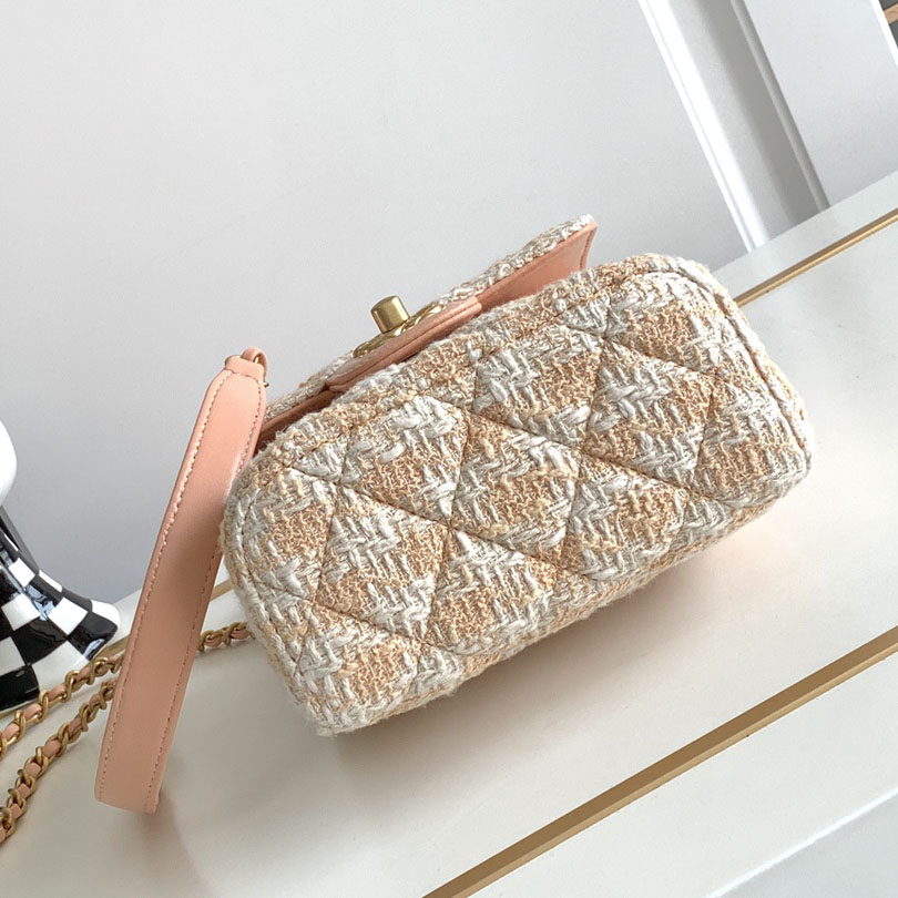 Chanel Box style plaid tweed orange with yellow/pink/green handbag crossbody bag