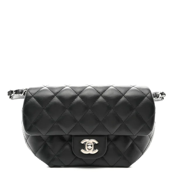 Chanel CC Uniform Flap Belt Bag Small Black Quilted Calfskin Leather Silver Hardware