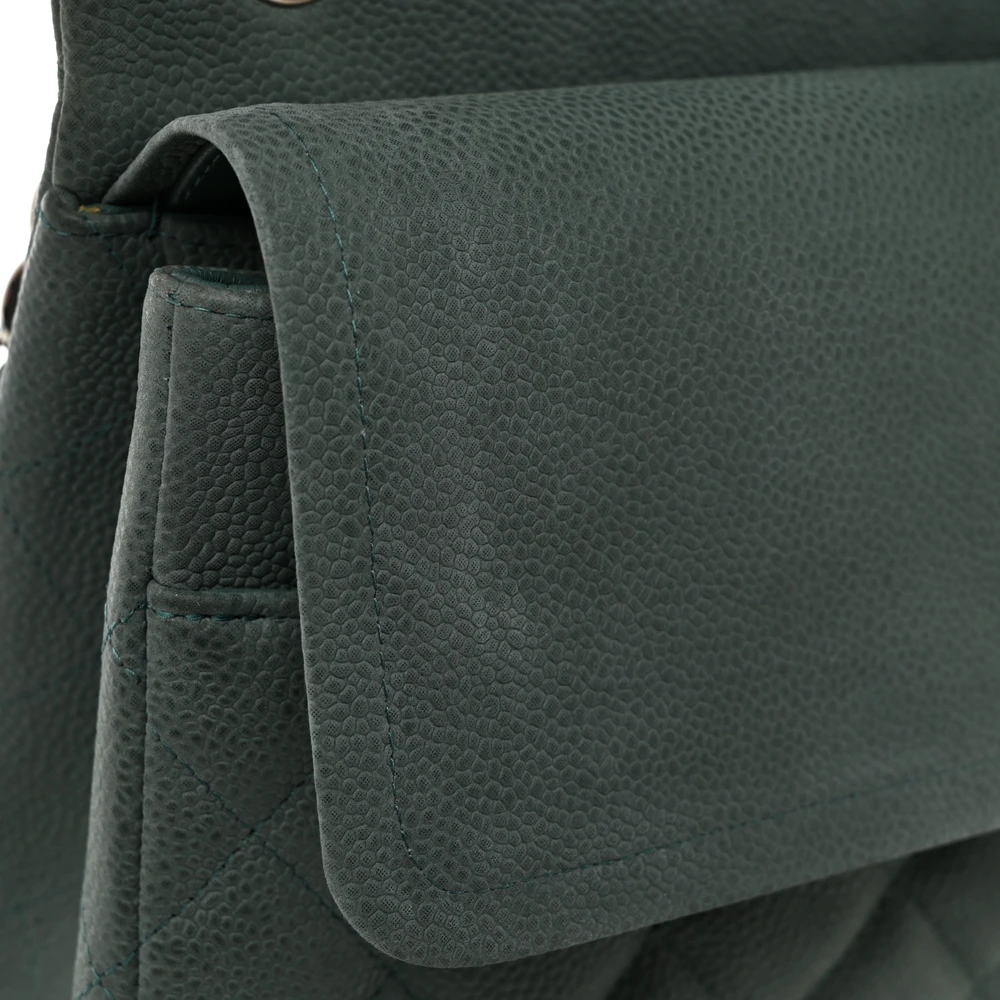 Chanel Double Flap Jumbo in Green Caviar Leather