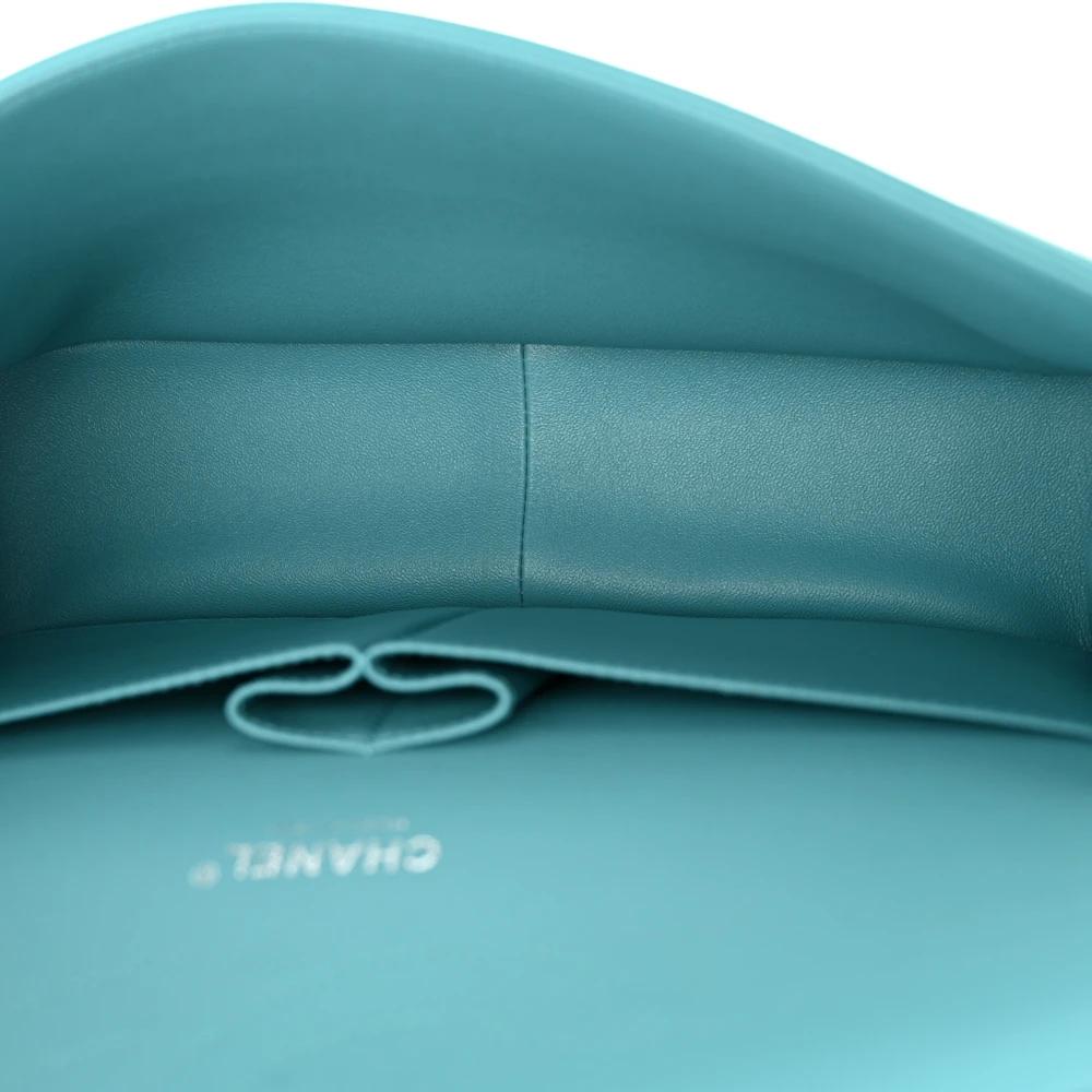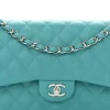 Chanel Double Flap Jumbo Turquoise Quilted Lambskin Leather Silver Hardware