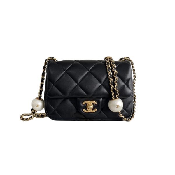 Chanel Double pearl CF chain bag 17/20.5cm White/Black Crossbody Bags