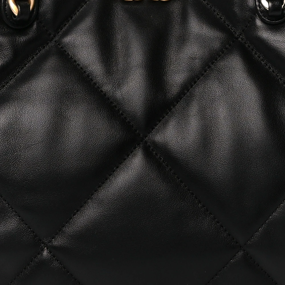 This Chanel East-West Shopping Bag Medium in Black Quilted Lambskin Leather with Mixed Metal Hardware from the Chanel 19 line is a sophisticated design. The soft lambskin leather adds a luxurious touch to its structured shape. Mixed metal hardware enhances its modern aesthetic. Spacious enough for daily essentials, perfect for versatile styling. The quilted design showcases Chanel iconic craftsmanship. A stylish and practical choice for any collection.
