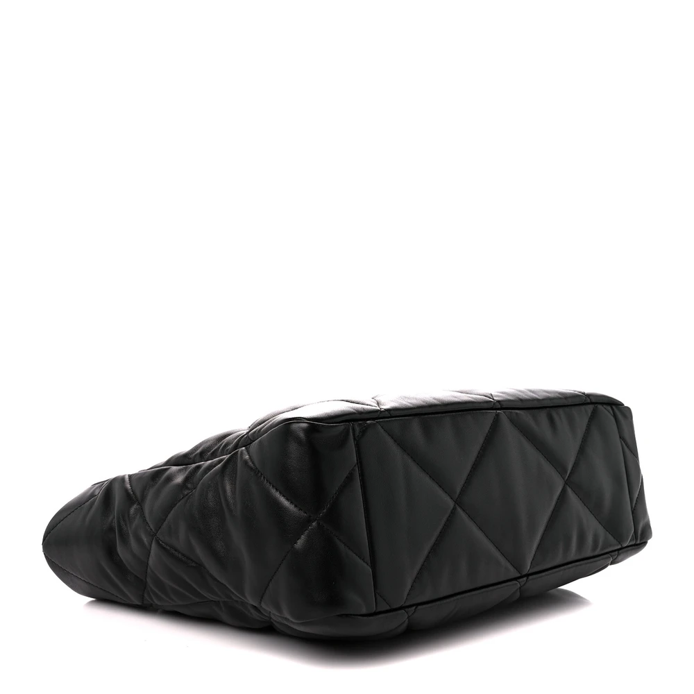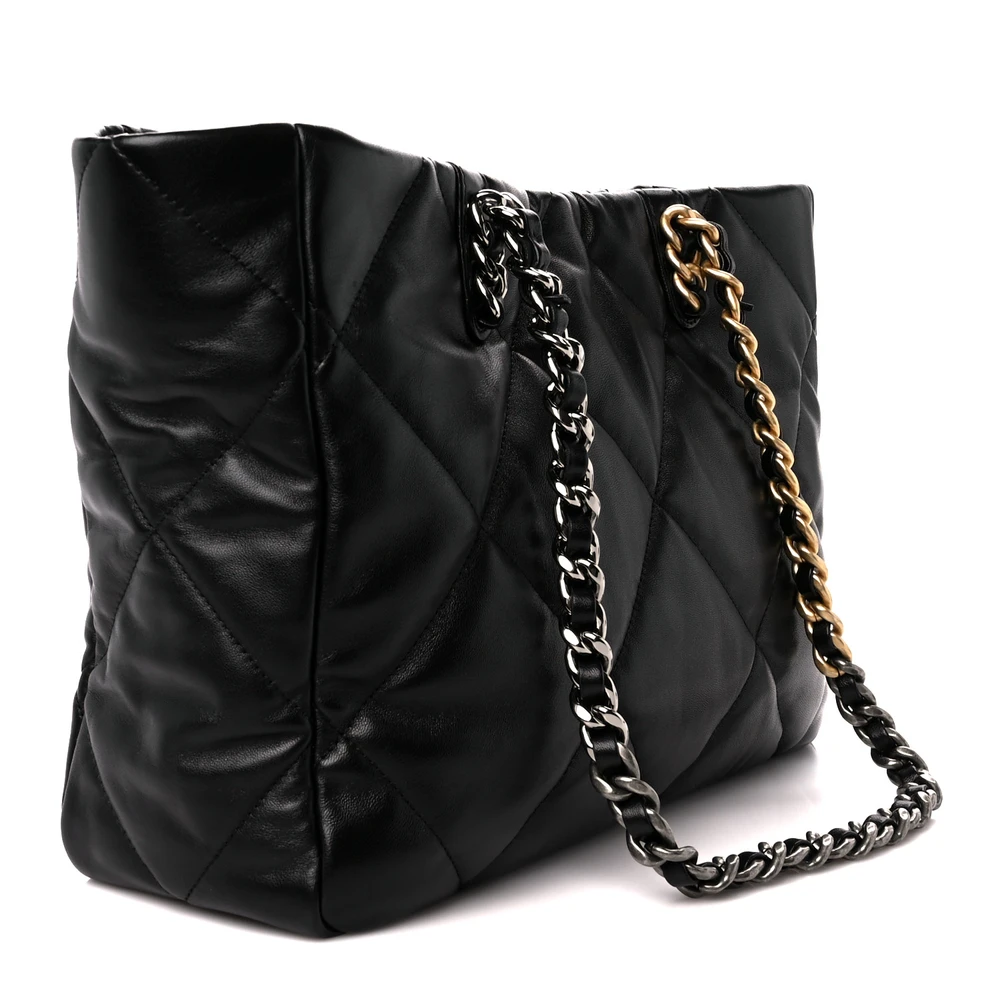 Chanel East-West Shopping Bag Medium Black Chanel 19 Quilted Lambskin Leather Mixed Metal Hardware