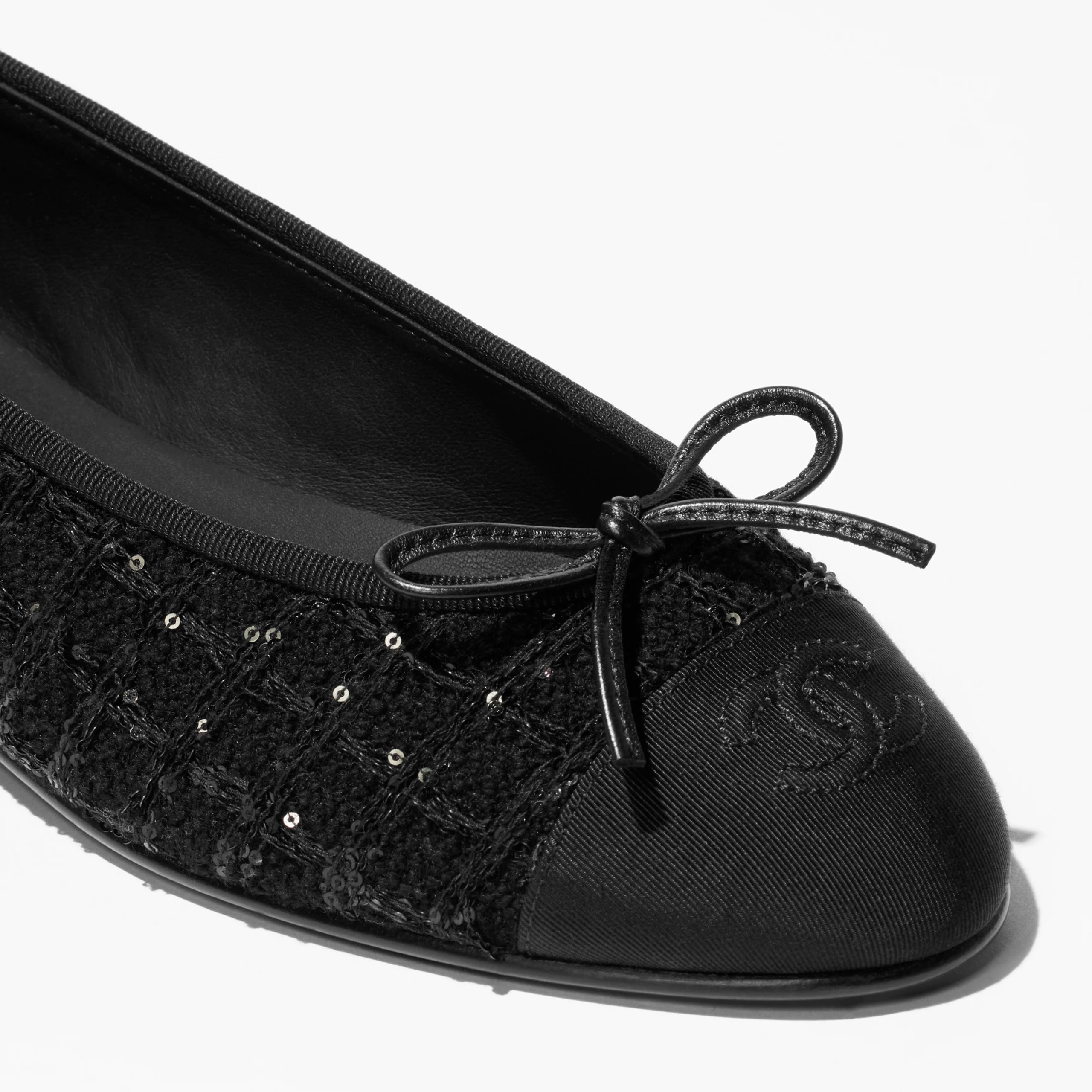 Chanel Flat shoes with diagonal soft wool and satin black Ballet Shoes
