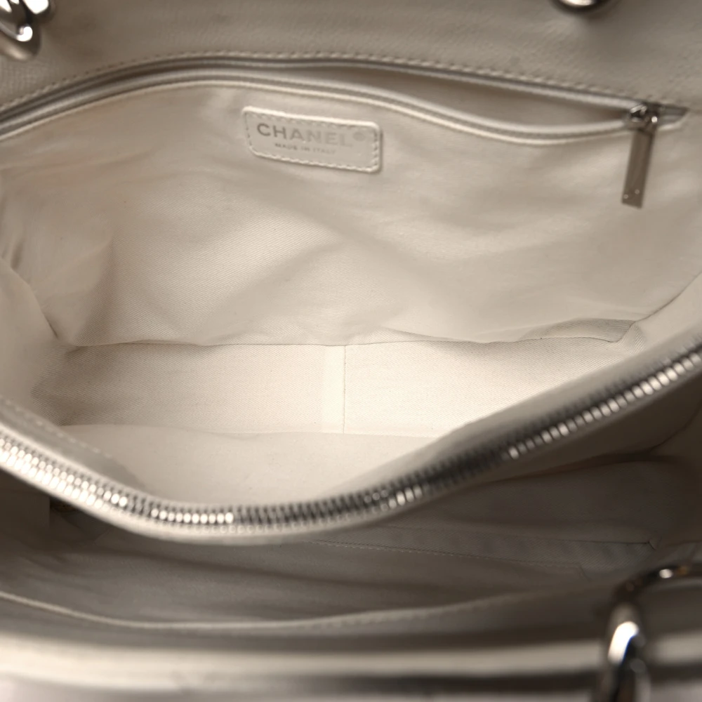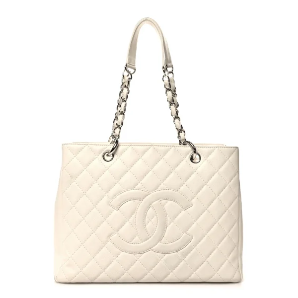 Chanel Grand Shopping Tote (GST) Large White Quilted Caviar Leather Silver Hardware