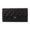 Chanel Large Interlocking CC Logo Trifold Wallet Black Caviar Leather Silver Hardware