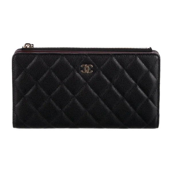 Chanel Large Interlocking CC Logo Wallet Black Caviar Leather Gold Hardware