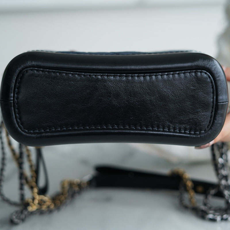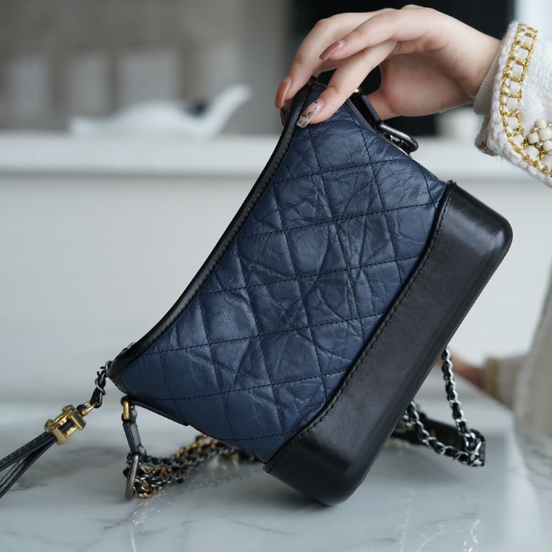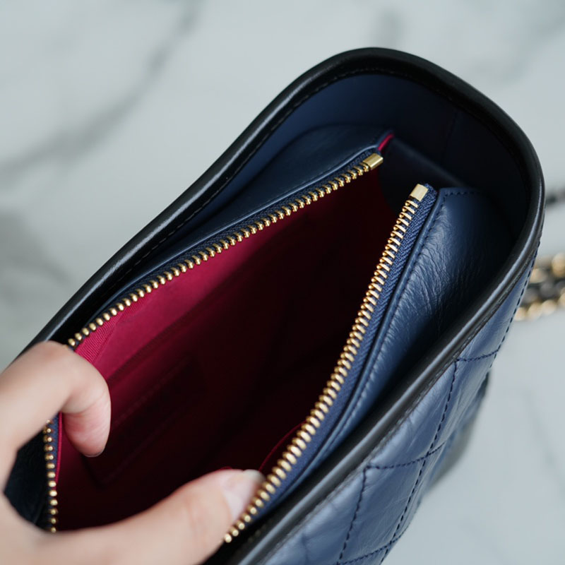 Chanel Navy blue with black Bag Quilted Calfskin Leather Shoulder Bags Crossbody Bags