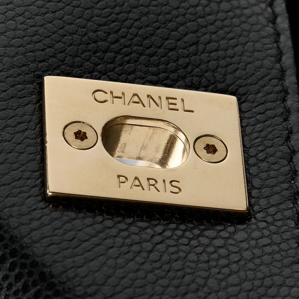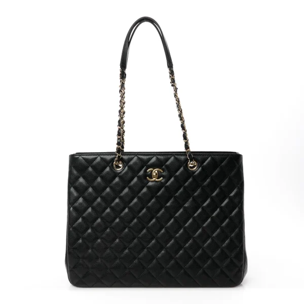 Chanel Shopping Tote Large Black Quilted Caviar Leather Light Gold Hardware