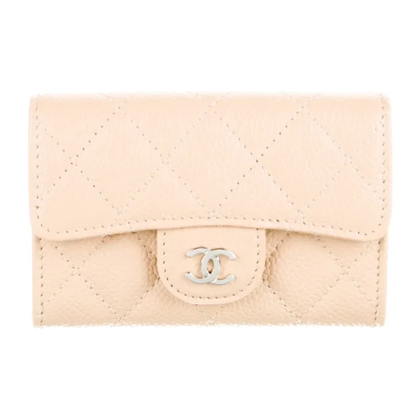 Chanel Small Interlocking CC Logo Wallet Neutrals Quilted Caviar Leather Silver Hardware