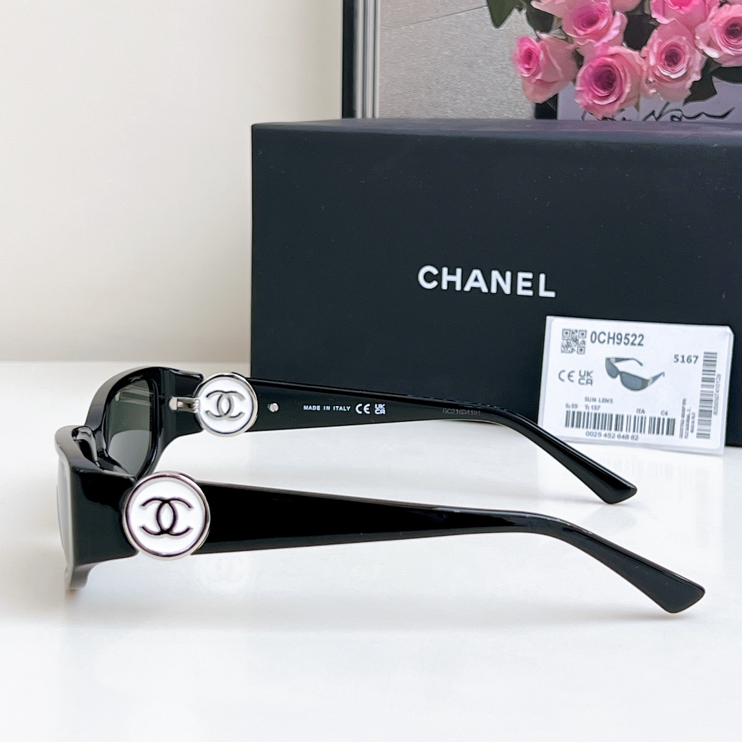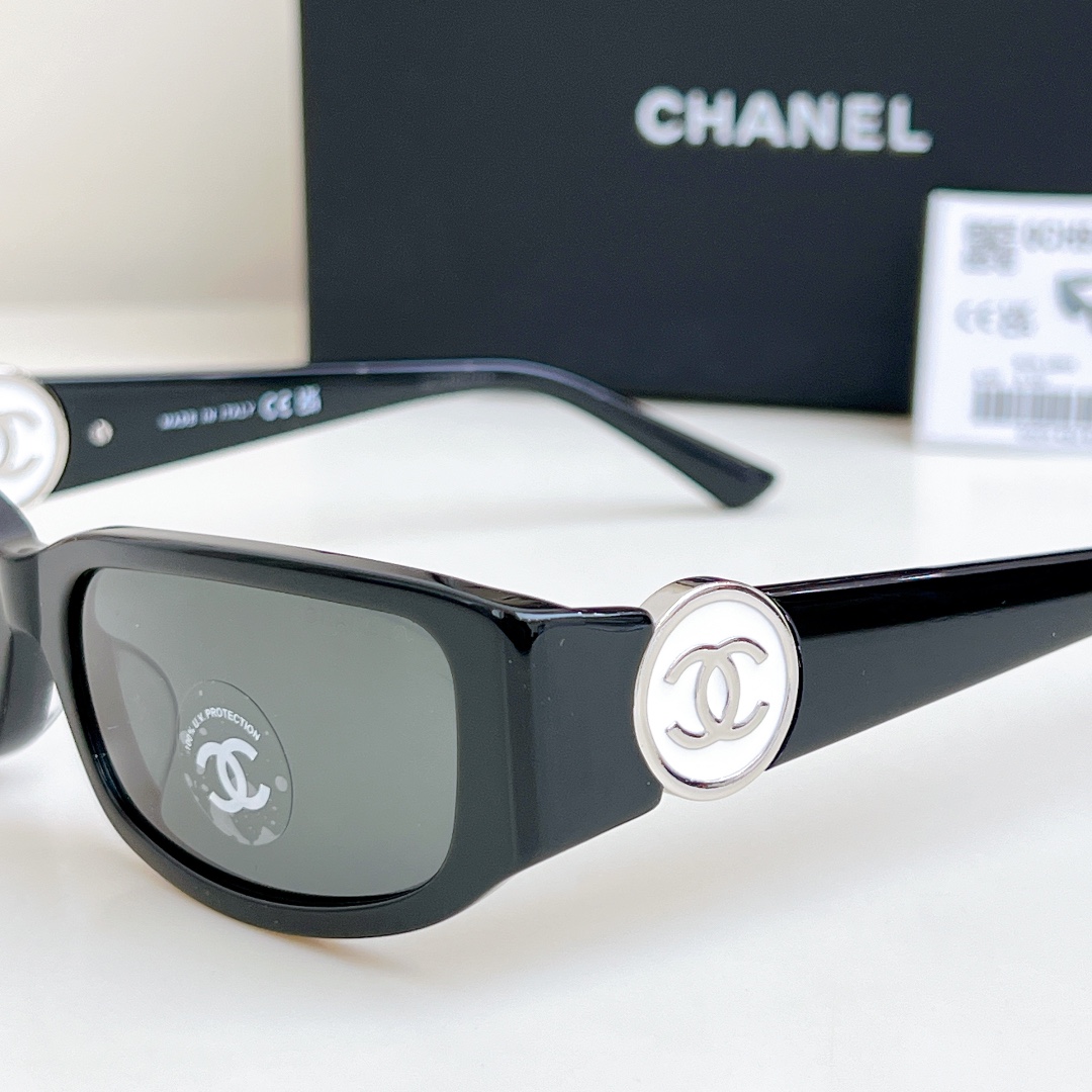 CHANEL square frame glasses black silver color size 56-18-137