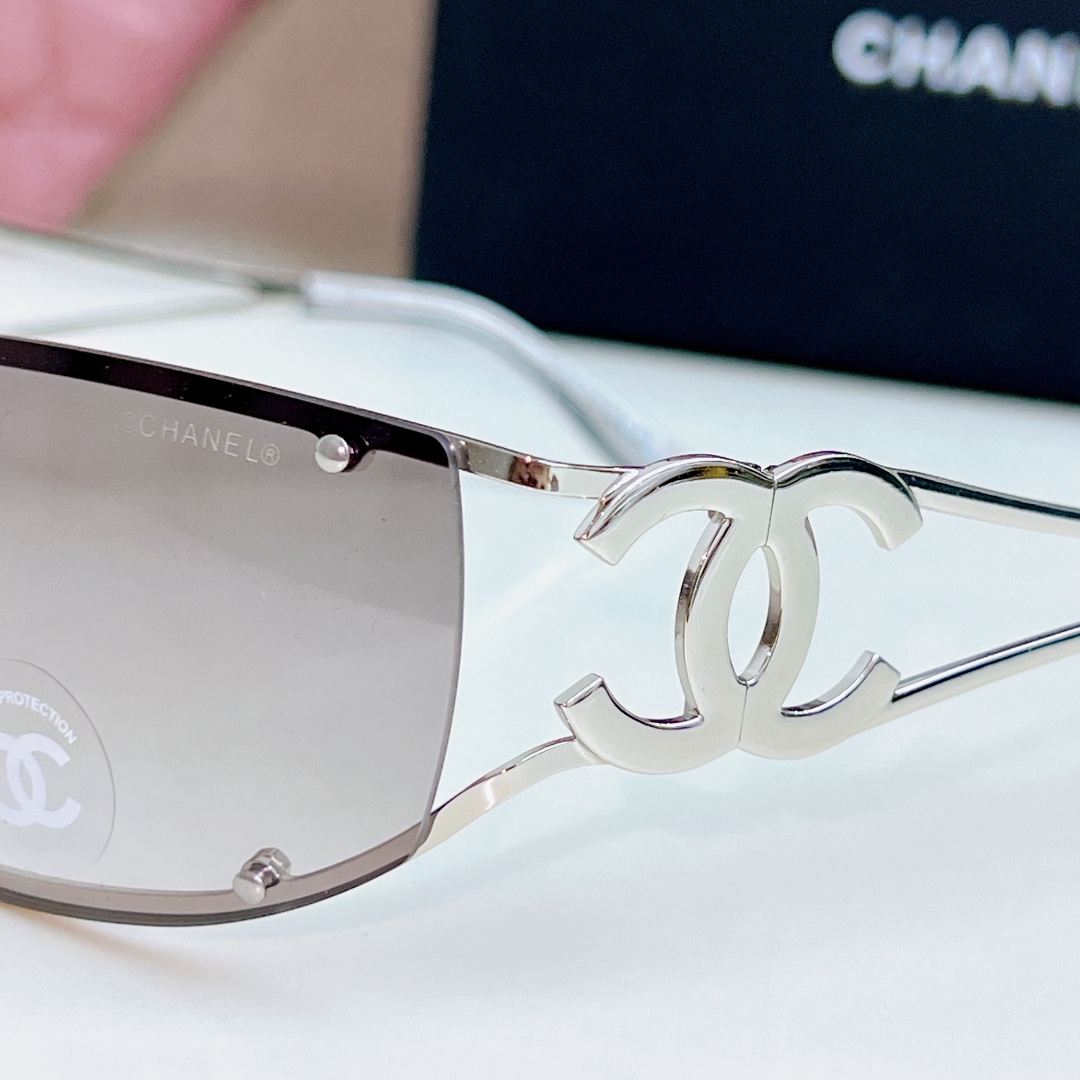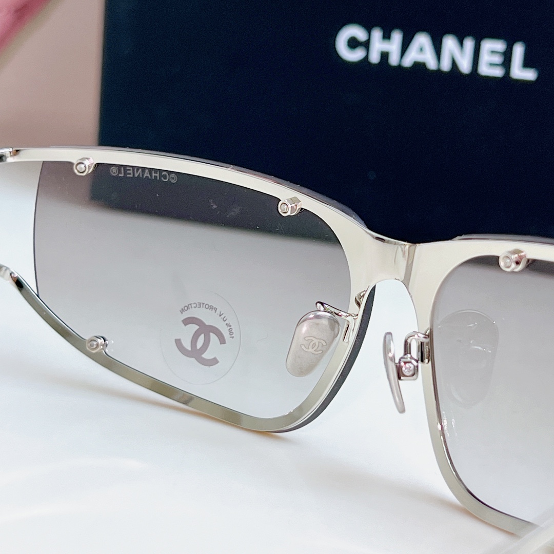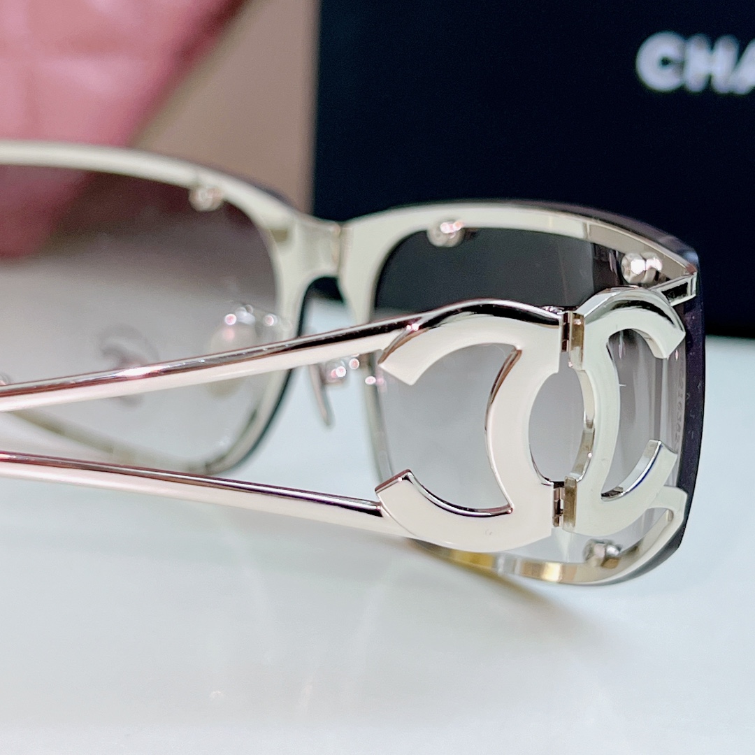 CHANEL square frame glasses grey silver color size 64-11-120