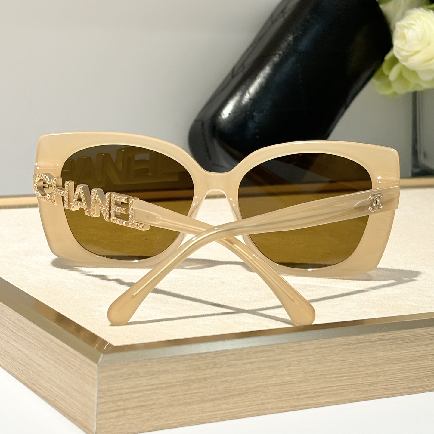 CHANEL square frame glasses khaki color SIZE 53-17-140