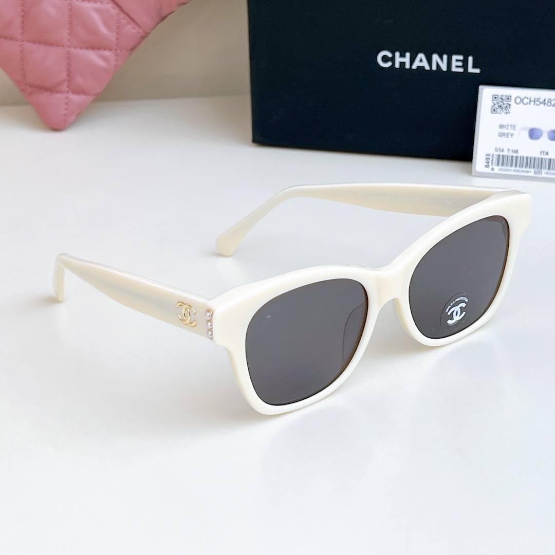 CHANEL square frame pearl glasses white color SIZE 54-17-140