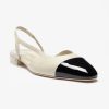 Chanel, white and black, Sheepskin and calf patent leather, Rear lace up flat shoes