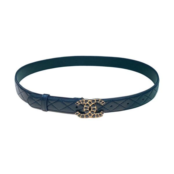 Chanel Women’s CC Belt In Blue Diamond Stitching Calfskin With Gold Hardware 30mm