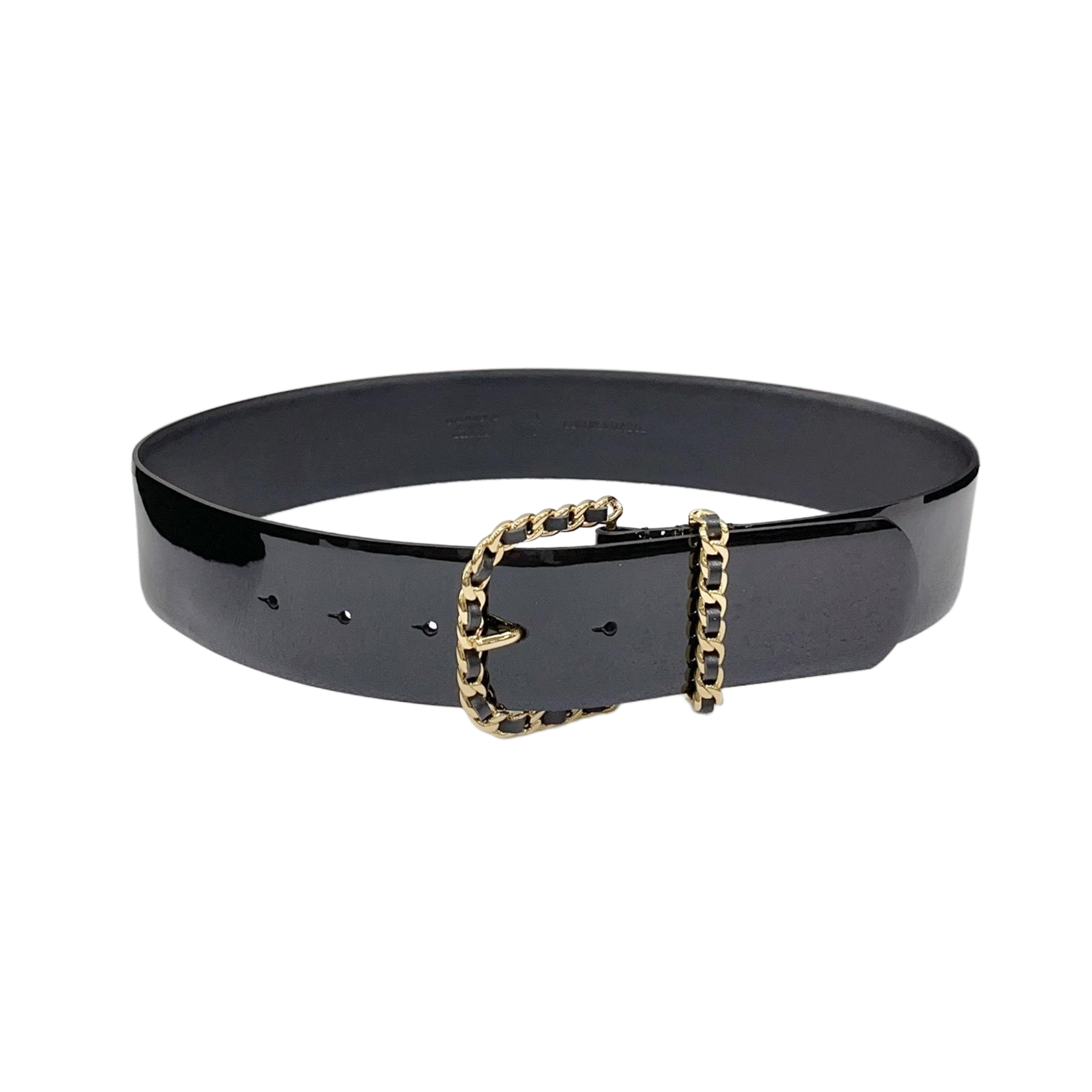 Chanel Women’s Chain Buckle Belt In Red/Black Patent Calfskin With Gold Hardware 50mm