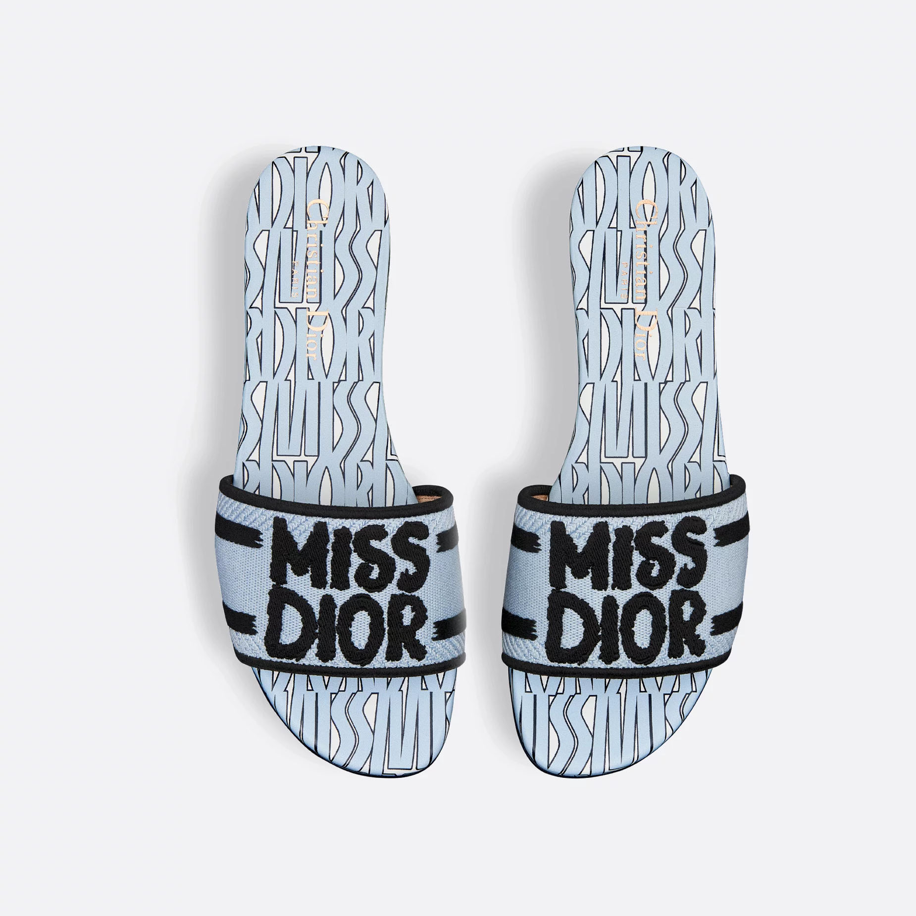 Dior blue square head slippers